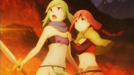 Some time after getting sexually harassed by Dust again,[4] Fio accompanied Mitsurugi and Cremea on a quest against an Ancient Dragon,[5] yet following their return to Axel, she witnessed how Mitsurugi was defeated by Kazuma Satou through underhand tactics, and accordingly stepped up to stop Kazuma from taking Mitsurugi's Gram, only to be scared off when he threatened to use Steal on her and Cremea.[6]