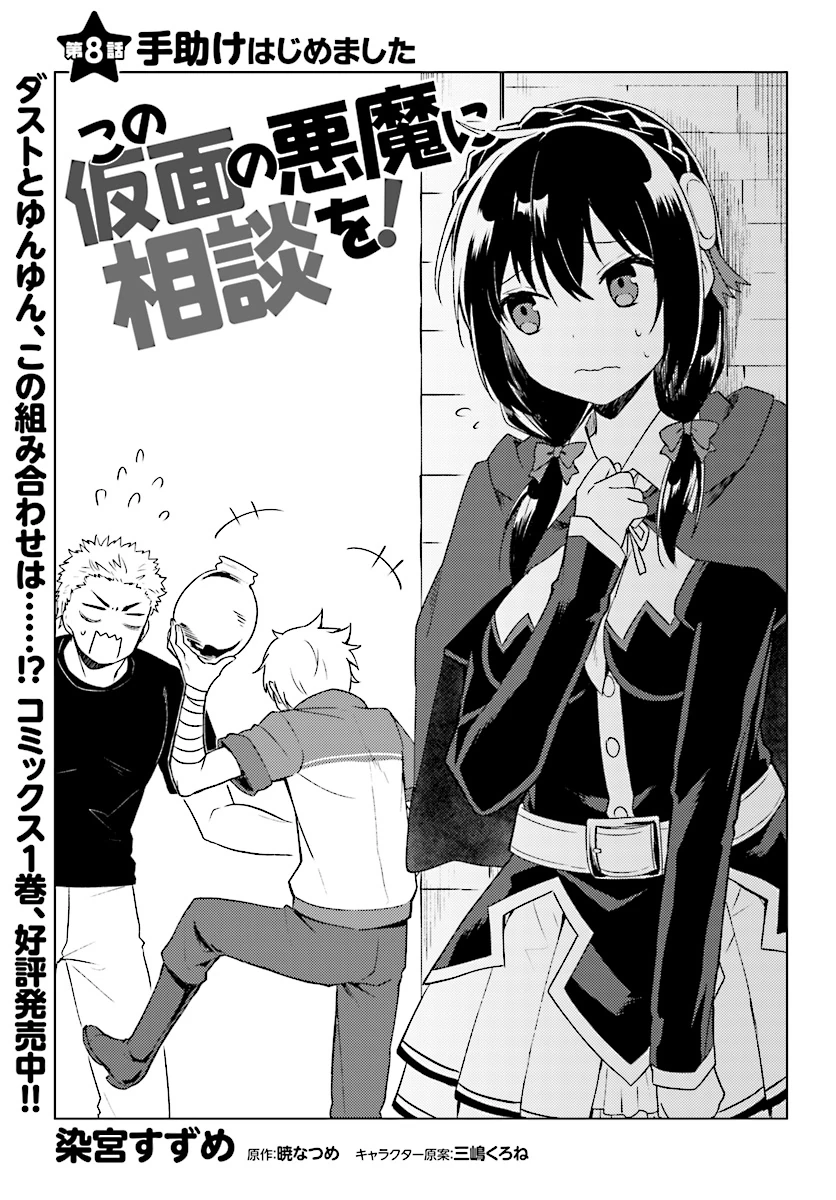 Today as a Helper (手助けはじめました, Tedasuke Hajimemashita) is the eighth chapter of the Kamen manga series, and covers Chapter 4 in Volume 1 of the light novels.