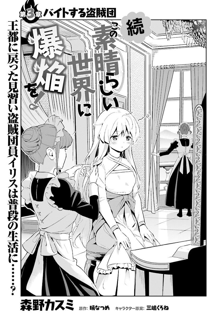 A Working Thief Gang (バイトする盗賊団, Baito Suru Tōzokudan) is the third chapter of the Zoku KonoSuba Bakuen manga series, and covers Chapter 2 in Bonus Volume 1 of the light novels.