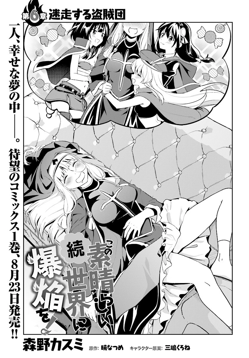 The Thief Gang Wanders (迷走する盗賊団, Mēsou Suru Tōzokudan) is the sixth chapter of the Zoku KonoSuba Bakuen manga series, and covers Chapter 3 in Bonus Volume 1 of the light novels.
